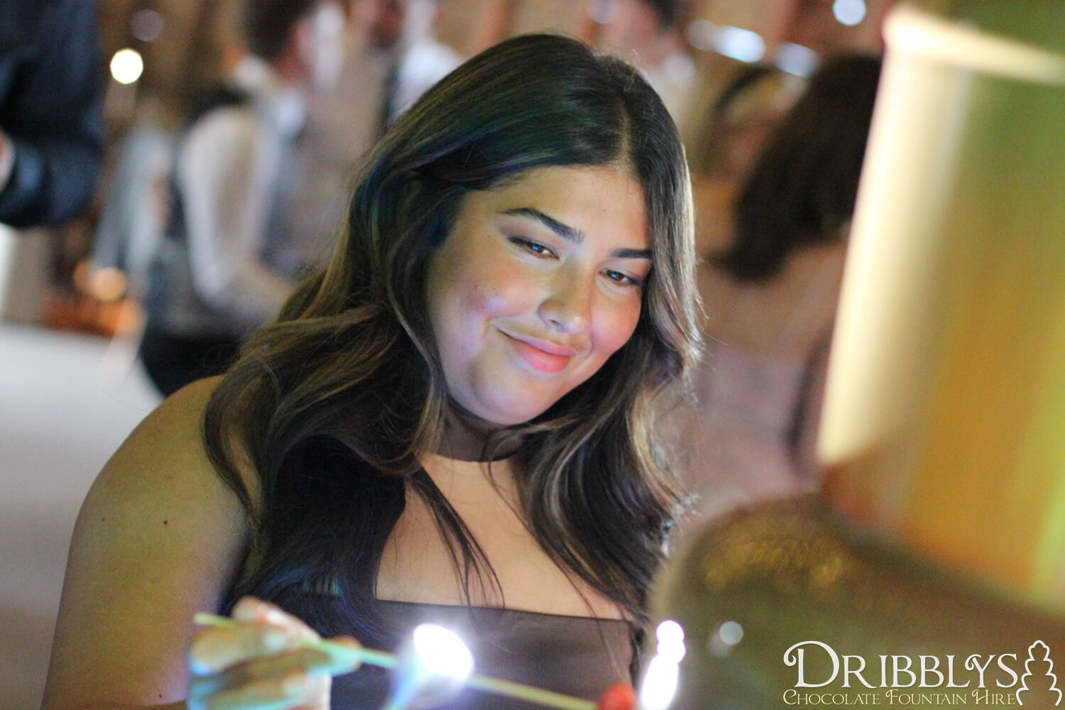 Our Fountains are self service so your guests are able to use the fountain themselves. However to ensure your chocolate fountain remains safe and hygienic for your guests, our staff member will ask guests to use the provided skewers, plates and napkins. A new skewer for each dip into the fountain is required and of course, no double dipping is permitted.